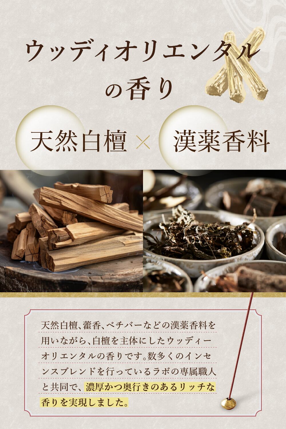 ・お香の中にはカカオの成分も含まれており、よりリッチな香りに仕上げられています。